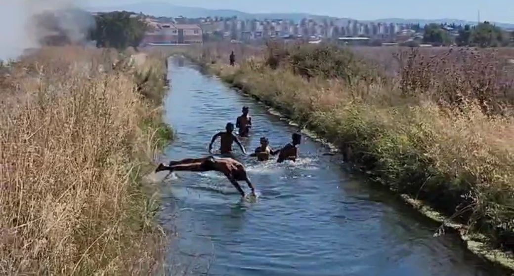 Edinilen bilgiye göre, İbrahim Önal Fen Lisesi karşısındaki otluk alanlarda yangın çıktı. Okullar bölgesine yakın noktada başlayan yangın, kısa sürede çevredeki yapıları tehdit etmeye başladı. Olay yerine hızla sevk edilen itfaiye ekipleri, uzun süren yoğun bir müdahale sonucunda yangını kontrol altına almayı başardı. Yangınla mücadele sürerken, birkaç çocuğun su kanalına atlaması dikkat çekti. Alevlerin yükseldiği alanın hemen yakınında bulunan sulama kanalına, sıcaklığın 36 dereceyi bulması nedeniyle serinlemek için giren 6-7 çocuk yaşanan tehlikeyi hiçe saydı. Çocuklar, yangına çok yakın bir mesafedeki beton köprüden suya akrobatik hareketlerle atlayarak yüzdü.