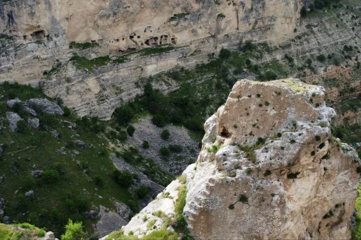 Birçok tarihi medeniyete ev sahipliği yapmış olan Tunceli’nin Çemişgezek ilçesinde, devasa büyüklükteki kayaların üzerinde yer alan kaya mezarları, ilk defa dron ile görüntülendi.