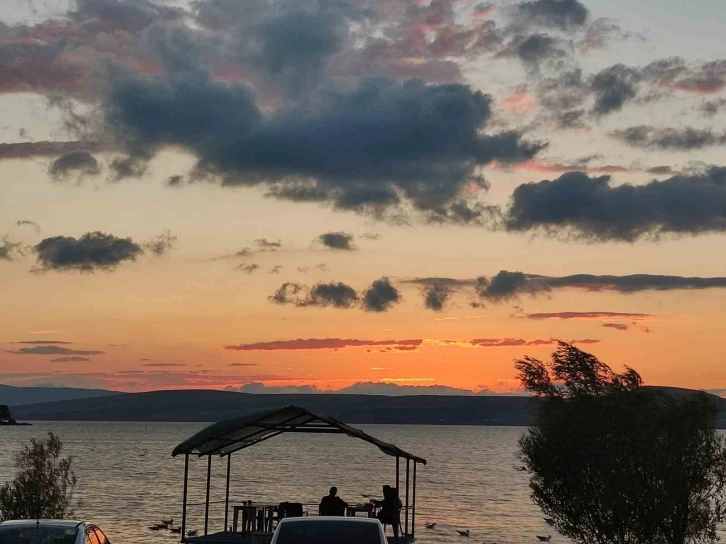 Balıkçı Turhan Kılıç, göl kıyısında gün batımını izlemeye gelen onlarca vatandaşın bu görsel şölene şahitlik ettiğini söyleyerek, güneşin batarken bulutlara yansıması ayrı bir güzellik oluşturduğunu söyledi.