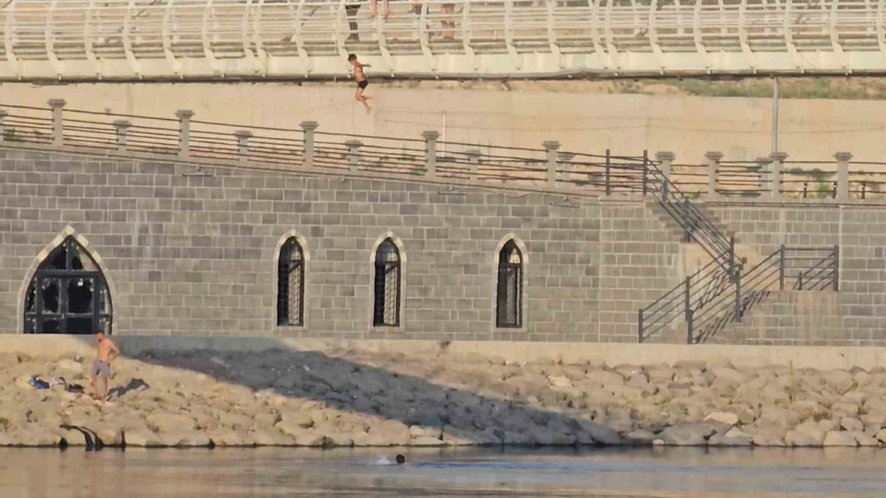 Şırnak’ta metrelerce yüksekten Dicle Nehri’ne atlayan çocukların yürekleri ağza getiren o anları cep telefonu kamerasıyla kaydedildi.