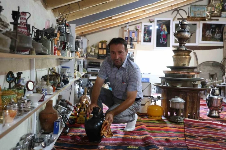 Sivas’ta bir vatandaş yeni yaptığı evinin çatı katını adeta müzeye dönüştürdü. Görenleri geçmişte yolculuğa çıkartan odayı çocukluktan bu yana hayal eden Adem Karaman, çatı katının tamamını antika eşyalarla süslemeyi hedefliyor. Sivas’ın Şarkışla ilçesine bağlı Cemel Beldesi’nde yaşayan Adem Karaman, çocukluk hayallerini gerçeğe dönüştürerek evinin çatı katını adeta bir müzeye çevirdi. 15 yaşından beri büyük bir tutkuyla topladığı antika eşyaları çatı katında sergileyen Karaman, bu özel köşesinde boş zamanlarını geçirerek huzur buluyor. Görenleri zamanda yolculuğa çıkaran çatı katını tamamen bir müze haline getirmeyi hedefleyen Karaman, bu özel koleksiyonunu gelecek nesillere aktarmak istiyor. “Evin çatı katı komple müze gibi olacak”