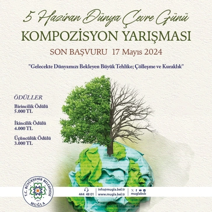 Muğla Büyükşehir Belediyesi’nin 5 Haziran Dünya Çevre Günü nedeniyle düzenlediği ’Çölleşme ve Kuraklığa Dayanıklılık’ temalı Kompozisyon Yarışması sonuçlandı. Yarışmanın birincilik ödülünü "Çölleşme ve Kuraklık" eseri ile Ayaz Altun kazandı. "Gelecekte Dünyamızı Bekleyen Büyük Tehlike, Çölleşme ve Kuraklık" mottosuyla düzenlenen yarışma, çevre bilinci oluşturmak ve bu önemli konulara dikkat çekmek amacıyla gerçekleştirildi. Yarışmada ikinci, "Dünyamızı Bekleyen Tehlike" eseri ile Nisa Özalp, üçüncü ise "İnsanlara Küsen Su" eseri ile Buket Doğan oldu. Muğla Büyükşehir Belediyesi’nin 5 Haziran Dünya Çevre Günü kapsamında düzenlediği bir diğer etkinlik olan Afiş Tasarım Yarışması’nın sonuçları ise 29 Mayıs’ta açıklanacak. Bu yarışmalar, çevre sorunlarına dikkat çekmeyi ve toplumu bu konularda daha bilinçli hale getirmeyi amaçlıyor. Yarışmada dereceye giren tüm katılımcılar, eserleriyle çevre duyarlılığını artırma çabasına önemli katkılarda bulundular.