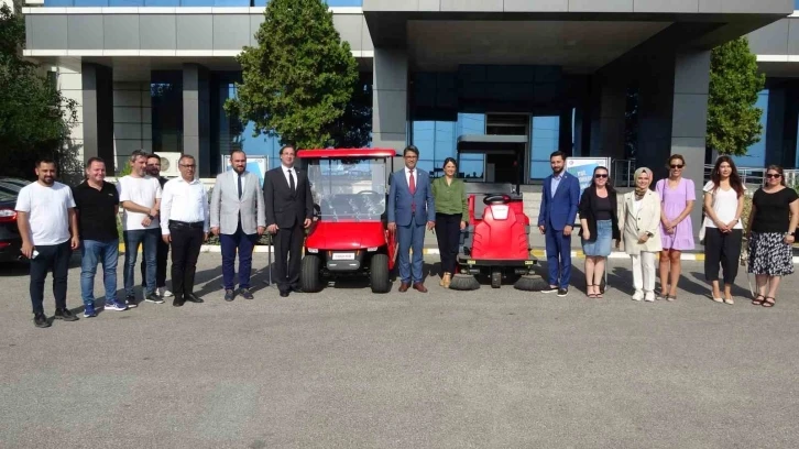 ÇOMÜ’ye kazandırılan 1 golf aracı ve 1 temizlik aracının test sürüşleri gerçekleştirildi. Rektör Erenoğlu, rektör yardımcılarıyla birlikte golf aracına binerek Rektörlük Binası çevresinde tur attı.