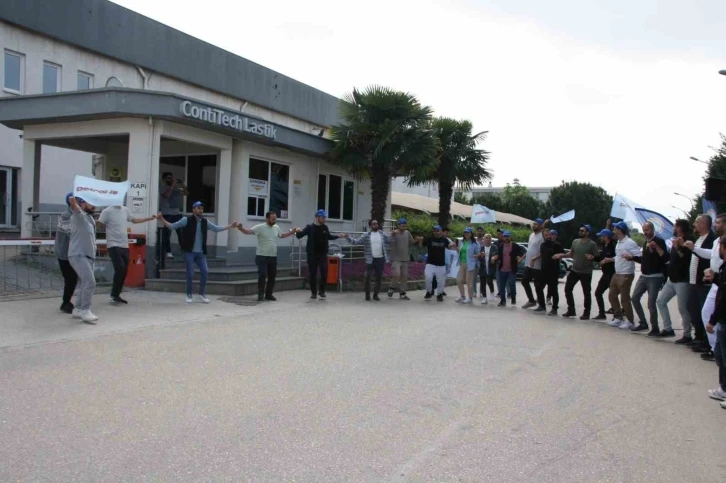 Arkadaşlarının iş sözleşmesindeki müeyyideler yerine, keyfi uygulama sonucu işten çıkarıldığını öne süren Alman Continental Grup bünyesinde Türkiye’de faaliyet gösteren Contitech Lastik A.Ş. işçileri, fabrika önünde eylem başlatırken Petrol-İş Bursa Şube Başkanı Ersin Birgül, “Bir kişiye yapılmış haksızlık, herkese yapılmış tehdittir” dedi.