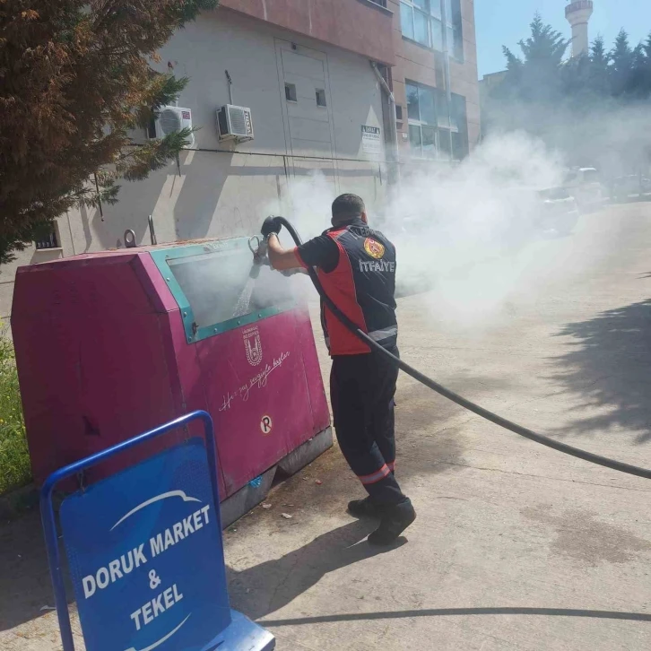 Bir marketin önünde bulunan konteynerdeki dumanları fark eden vatandaşların 112 ekiplerine haber vermesinin ardından itfaiye ekipleri olay yerine hızlı şekilde ulaşarak yangın büyümeden müdahale etti.