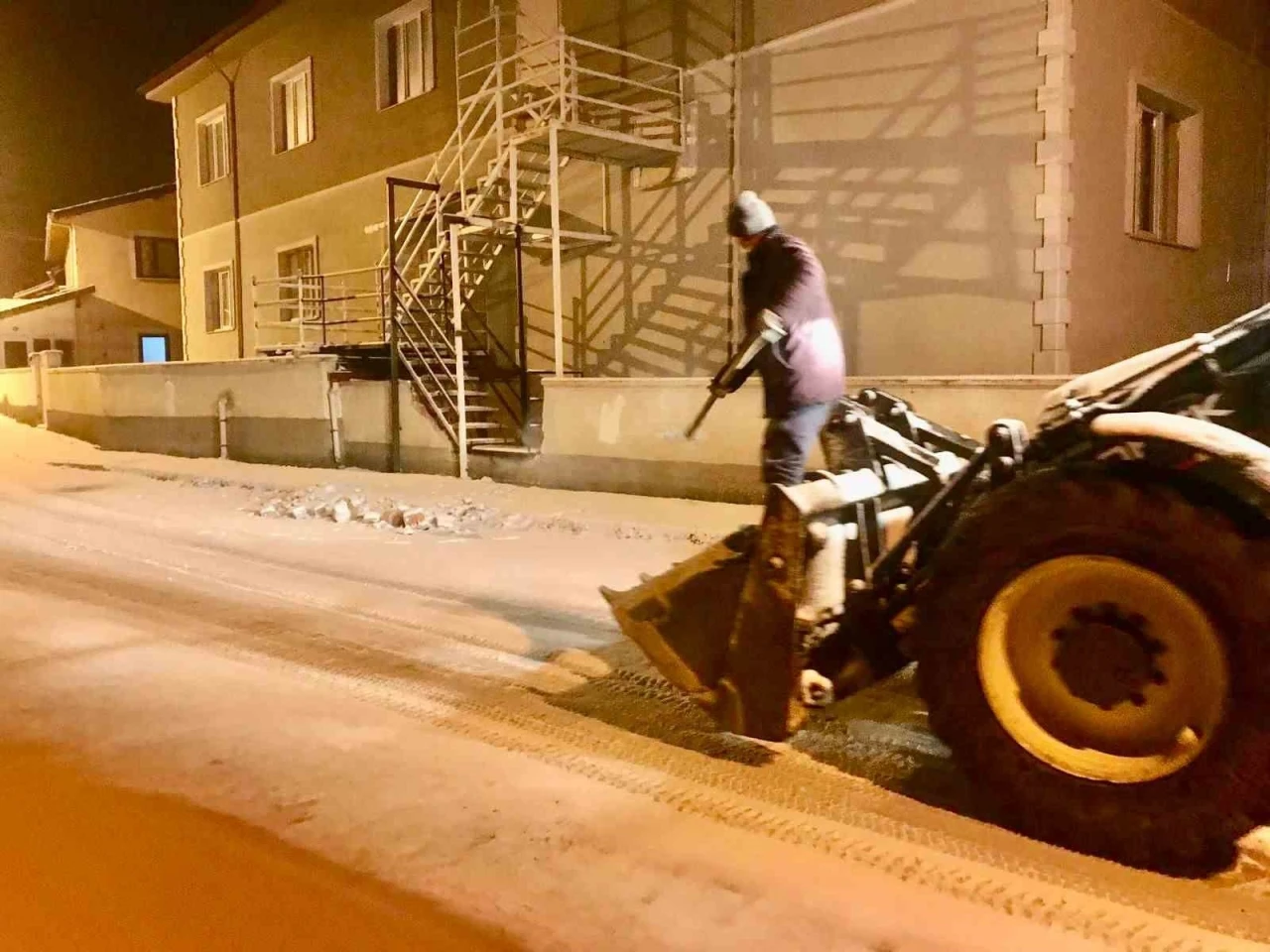 Çorum’un İskilip ilçesi, gece saatlerinde yağan kar ile beyaza büründü.