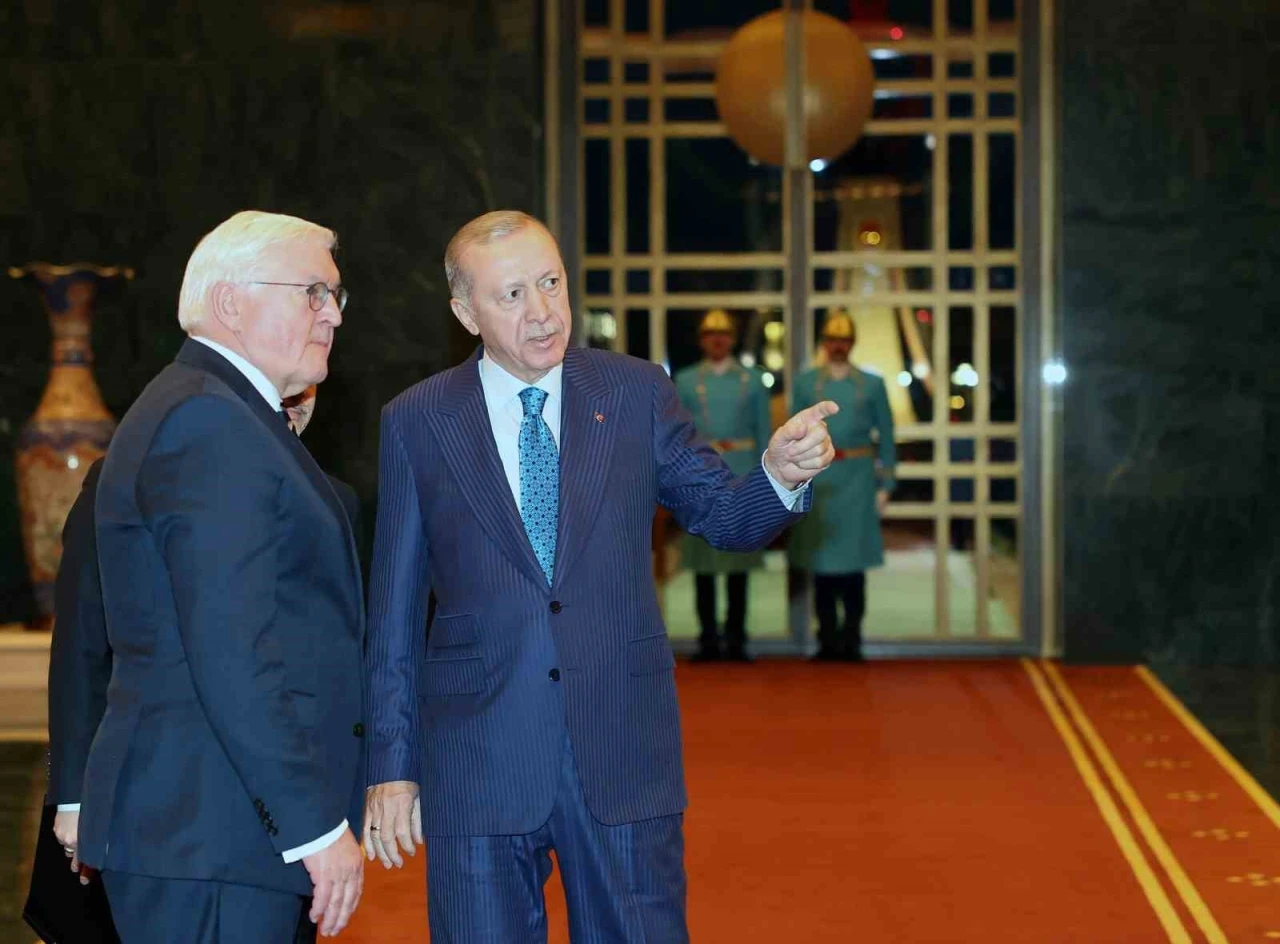 Cumhurbaşkanı Recep Tayyip Erdoğan, Almanya Cumhurbaşkanı Frank-Walter Steinmeier ile bir araya geldi. Cumhurbaşkanı Erdoğan, Steinmeier’i Cumhurbaşkanlığı Külliyesi’nin giriş kapısında karşıladı. Erdoğan ve Steinmeier, merdivenlerde Türkiye ve Almanya bayrakları önünde fotoğraf çektirdi. Erdoğan, mevkidaşı Steinmeier ile gerçekleştireceği ikili görüşme ve heyetler arası çalışma yemeğinin ardından ortak basın toplantısı düzenleyecek.