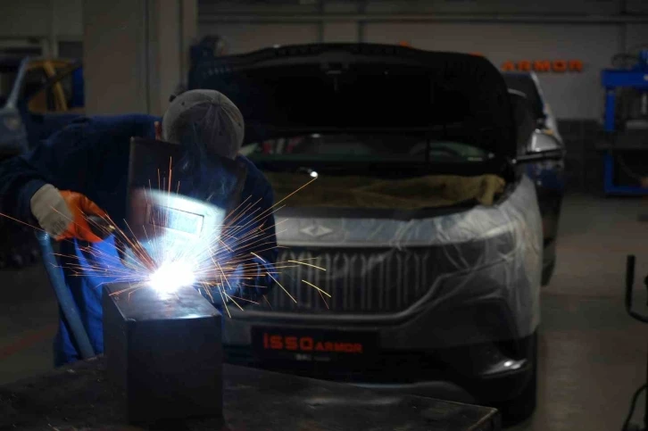 Ankara’da Ostim Organize Sanayi Bölgesi’nde araç zırhlama işi ile uğraşan İsmail Eşsiz, yüksek tehditlere karşı geliştirdikleri araç zırhlama işlemini yerli ve milli yapım Togg’a uyguladı.