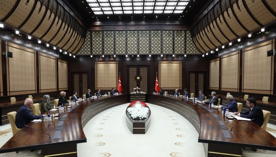 Cumhurbaşkanı Recep Tayyip Erdoğan, Cumhurbaşkanlığı Politika Kurullarının başkanvekillerini Cumhurbaşkanlığı Külliyesinde kabul etti.