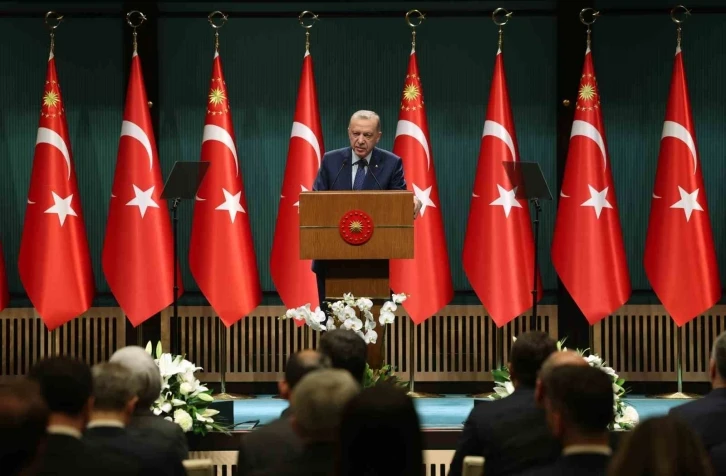 Cumhurbaşkanı Recep Tayyip Erdoğan, Cumhurbaşkanlığı Kabine Toplantısı sonrasında millete sesleniş konuşmasını gerçekleştirdi. Türkiye Yüzyılı vizyonunu hayata geçirme azmiyle yurt içinde ve yurt dışında canla başla çalışmaya devam ettiklerini söyleyen Cumhurbaşkanı Erdoğan, ”Bu sabah milli savaş uçağımız Kaan, ikinci defa gökyüzüyle buluştu. Sabahki uçuşunda Kaan, 10 bin fit ve 230 knot hıza ulaşmayı başardı. Yılbaşından beri iki kez milletimizin göğsünü kabartan TUSAŞ’ı ve Savunma Sanayi Başkanlığımızı tebrik ediyorum. Gaziantep’in İslahiye ilçesinde meydana gelen minibüs kazasında vefat eden 6’sı öğrenci 9 kardeşimize Allah’tan rahmet, yaralılarımıza acil şifalar diliyorum. Son toplantımızdan bu yana özellikle dış politikada seçimler sebebiyle ertelediğimiz ziyaretlere ve kabullere ağırlık verdik. Tanzanya Cumhurbaşkanı Sayın Samiye Hasan’ın resmi ziyareti devlet başkanı düzeyinde bu ülkeden 14 yıl sonra Türkiye’ye yapılan ilk ziyaret. Tanzanya ticaret ve yatırımlar açısından ülkemizin Doğu Afrika’daki önde gelen ortakları arasında yer alıyor. Türk firmaları, Tanzanya’da bugüne kadar yaklaşık 6,5 milyar dolar değerinde 14 proje üstlendi. Tanzanya’yı baştan başa saracak standart aralıklı demir yolu projesinin büyük kısmı bir Türk şirketi tarafından inşa edildi. Görüşmelerimizde son 21 yılda 11 milyon dolardan 345 milyon dolara çıkan ticaretimizi süratle 1 milyar dolar seviyesine taşımayı kararlaştırdık” dedi.