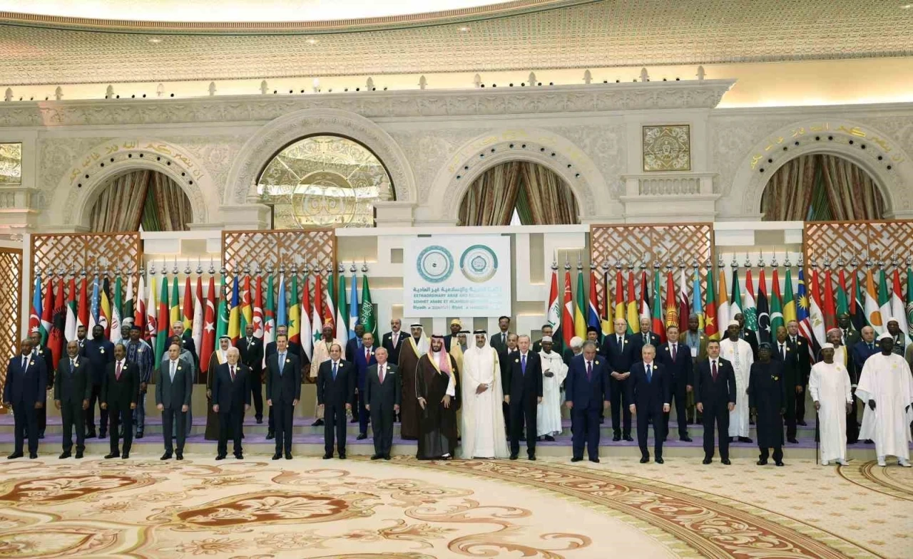 Cumhurbaşkanı Recep Tayyip Erdoğan, İslam İşbirliği Teşkilatı (İİT) ve Arap Ligi Olağanüstü Ortak Zirve Toplantısı’na katılmak üzere Suudi Arabistan’a geldi. Kral Halid Uluslararası Havalimanı’nda karşılanan Cumhurbaşkanı Erdoğan, daha sonra zirvenin yapılacağı alana geçti. Erdoğan, zirve öncesi aile fotoğrafı çekimine katıldı. Aile fotoğrafı çekiminde Erdoğan’ın solunda Katar Emiri Şeyh Temim bin Hamed Al Thani, sağında ise Tacikistan Cumhurbaşkanı İmamali Rahman yer aldı.