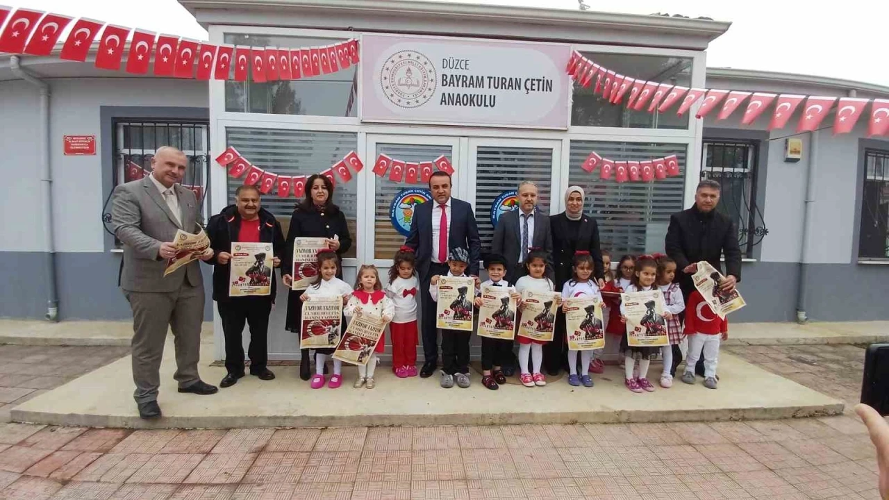 Düzce’de Cumhuriyetin ilanının 101. yılı coşkuyla kutlanıyor. Bayram Turan Çetin Anaokulu öğrencilere de coşkuya ortak olarak hazırladıkları özel gösteriyi Düzce İl Sağlık Müdürü Dr. Yasin Yılmaz, Milli Eğitim Müdürü Emrullah Aydın, sevilen sinema ve tiyatro oyuncusu Nurullah Çelebi ile sağlık ekiplerine sergilediler.
