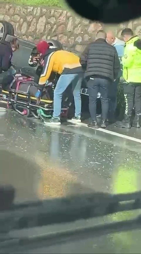 Kocaeli D100 kara yolunda meydana gelen trafik kazasında otomobil ters döndü, sürücü yaralandı.