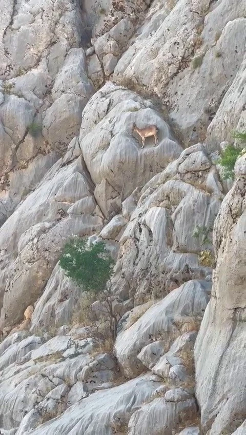 Adıyaman’ın Sincik ilçesinde dağ keçileri sürü halinde ilçe girişindeki boğaz mevkiine görüntülendi.