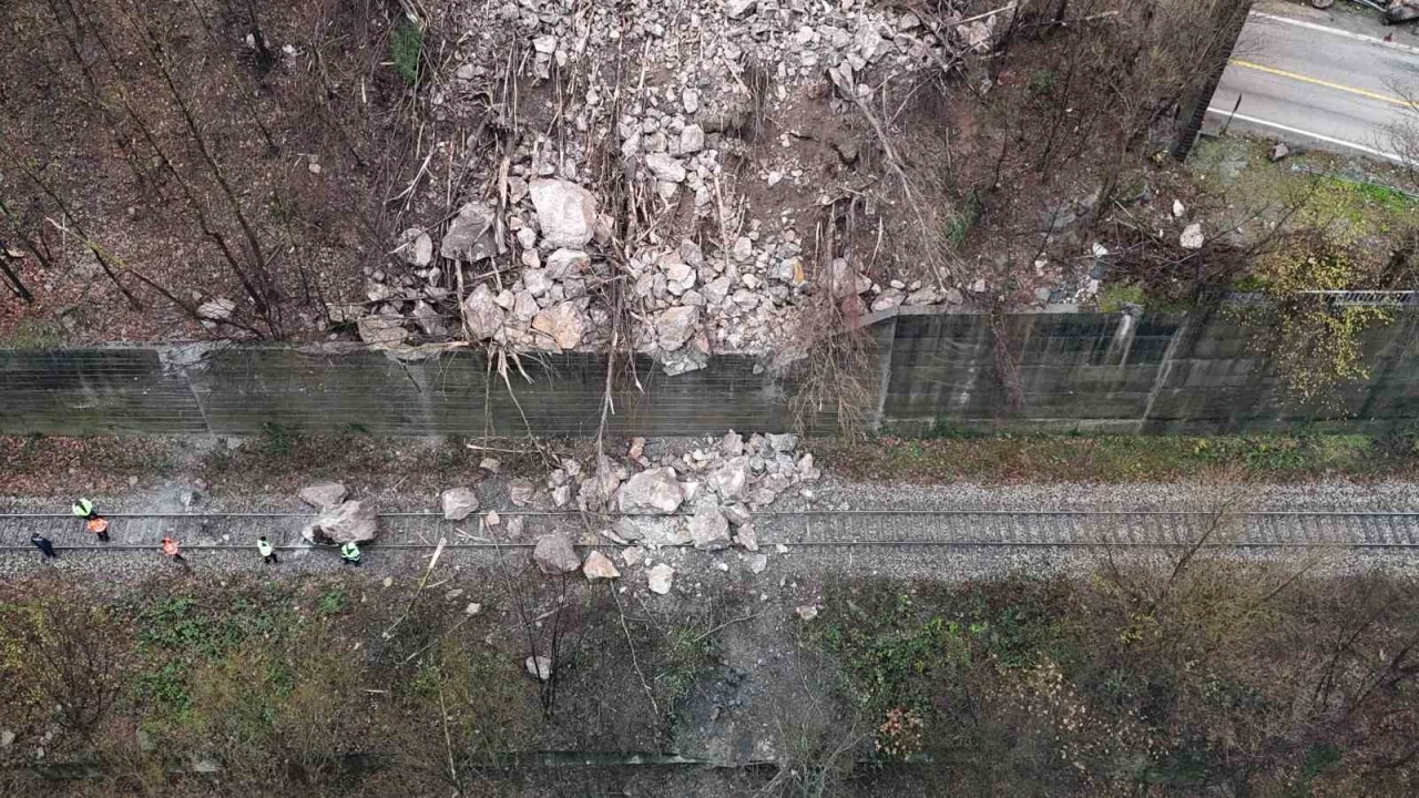 Karabük-Zonguldak seferini yapan trenin önüne dağdan kopan kayalar düştü. Facianın eşiğinden dönüldüğü olay sonrası demiryolu tamamen ulaşıma kapandı.