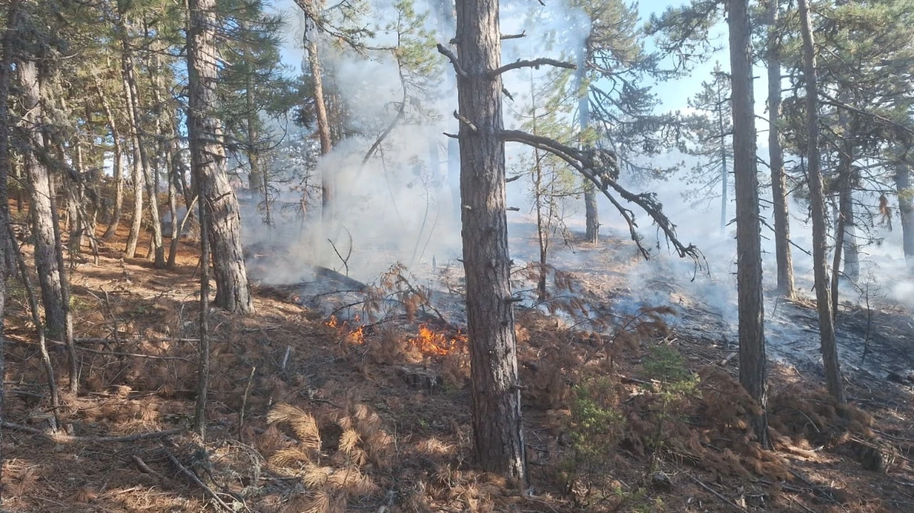 Meydana gelen yangında yaklaşık 500 metrekarelik kara çam ormanı zarar gördü.