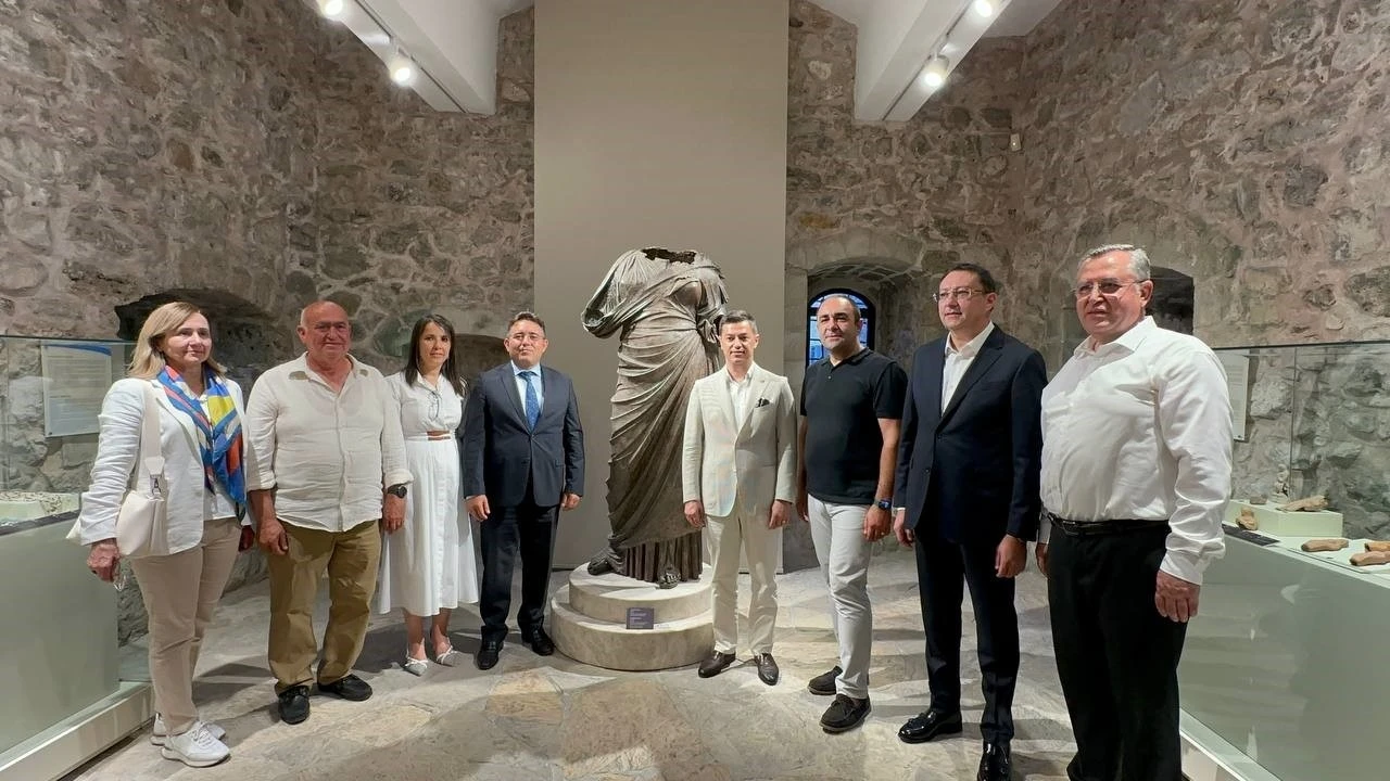Serginin açılışında konuşan Marmaris Ticaret Odası Başkanı Mutlu Ayhan, çocukluğunun geçtiği Marmaris Kalesi’nde bu anlamlı etkinliğe ev sahipliği yapmanın kendisi için ayrı bir gurur kaynağı olduğunu belirtti. Konuşmasında heykelin sembolik anlamına dikkat çeken Ayhan, "Bugün yalnızca bir sergi değil, Marmaris’in kültürel hafızasına sahip çıkmanın yeni bir adımını atıyoruz. Bu heykel yalnızca bir arkeolojik bulgu değil, aynı zamanda Marmaris’in hafızası, denizle kurduğu kadim bağın sessiz tanığıdır" dedi. Heykeli 2020 yılında Bozburun açıklarında balıkçı ağına takıldığında hiç tereddüt etmeden devlete teslim eden Bodrumlu balıkçı Hasan Önal’a da teşekkür eden Ayhan, "Hasan Önal, gösterdiği duyarlılık ve örnek vatandaşlıkla bu önemli kültür varlığının kamuya kazandırılmasına vesile oldu. Kendisine tüm Marmaris adına teşekkür ediyorum" ifadelerini kullandı. Mutlu Ayhan konuşmasında, Marmaris Ticaret Odası’nın kültürel mirasa verdiği önemi de vurgulayarak, "Yalnızca geçmişi korumakla kalmıyoruz, geleceğe de yatırım yapıyoruz. Phoenix Antik Kenti’nden Amos ve Kedreai kazılarına, Serçe Limanı’ndaki batıklardan Yeşilbelde kaya mezarına kadar birçok projeye destek veriyoruz" dedi. Ayrıca, Bodrum Sualtı Arkeoloji Müzesi’nde sergilenen cam batığın birebir kopyasının Marmaris Körfezi’ne batırılması için başvuruların yapıldığını ve sürecin sonuna gelindiğini de açıkladı. Sergideki 93 eser ilk kez sergilendi