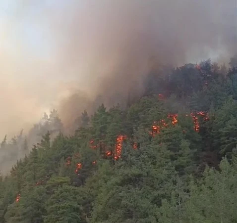 Denizli’nin Acıpayam ilçesinde kullanılmayan boş bir evde çıkan yangın ormana sıçradı. Geniş bir bölgeye yayılan alevlerin kontrol altına alınabilmesi için havadan ve karadan müdahale sürüyor.