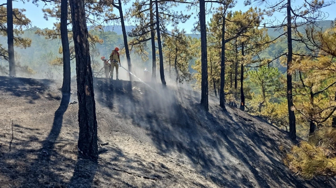Denizli’nin Honaz ilçesinde çıkan orman yangını, ekiplerin havadan ve karadan yapılan yoğun mücadele sonucu büyümeden kontrol altına alındı. 1,5 hektar alanın zarar gördüğü yangına yapılan hızlı müdahale sonucu 165 hektar orman sahası yanmaktan kurtarıldı. Edinilen bilgiye göre; bugün saat 13.30 sıralarında Honaz ilçesine bağlı Karaçay Mahallesi Kuşoğlu mevkiindeki ormanlık alanda henüz belirlenemeyen bir nedenle yangın çıktı. Bölgede etkili olan rüzgarında etkisiyle geniş bir alana yayılan yangının kontrol altına alınabilmesi için Denizli Orman Bölge Müdürlüğüne bağlı ekipler tarafından karadan ve havadan müdahale edilmeye başlandı. Yangınına havadan 3 helikopterin yanı sıra karadan ise 10 arazöz, 4 iş makinesi, 6 ilk müdahale aracı ve 87 yangın söndürme işçisiyle müdahale edildi. Yangının büyümeden kontrol altına alınması için zamana karşı verilen mücadeleye köylüler de gerek ellerindeki kazma kürekler gerekse traktör ve su tankerleriyle destek verdi. Yangın mahallindeki Denizli Orman Bölge Müdürlüğü ekiplerinin hızlı müdahalesi sonucu, yangının ilerleyerek büyümesine engel olundu. Zamanında yapılan etkili müdahale sayesinde, 165 hektar ormanlık alanın zarar görmesinin önüne geçildi. Kontrol altına alınan ve soğutma çalışmalarının devam ettiği yangında, yaklaşık 1,5 hektar orman alanı zarar gördü.