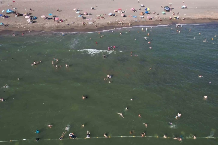 HATAY (İHA) – Asrın felaketiyle birlikte geçtiğimiz yıl sessizliğe bürünen Hatay’ın Samandağ ilçesinde bulunan 14 kilometre uzunluğundaki sahilde bayram tatilinin 9 gün olması ve sıcak havanın etkisiyle deprem öncesindekine benzer yoğunluk yaşandı. Kahramanmaraş merkezli depremlerin büyük yıkım yaptığı Hatay’ın Samandağ ilçesindeki 14 kilometrelik sahilde geçtiğimiz yıl bayramlarda sessizlik yaşanmıştı. Depremin yaralarının sarılması ve bölge halkının memleketlerine dönmesiyle birlikte Kurban Bayram’ında Türkiye’nin en uzun sahili olan Samandağ sahilinde yoğunluk yaşandı. Hava sıcaklığının 40 derecenin üzerine çıktığı bölgede vatandaşlar, Akdeniz’in serin suyunda serinledi. Halk plajında yaşanan yoğunluk dron ile havadan da görüntülendi. Hatay Büyükşehir Belediyesi, İtfaiye Daire Başkanlığı’nda görevli can kurtaranlarda boğulma vakalarına karşı teyakuzda. “Sıcak havalarda serinlemenin tek yöntemi denize girmek olur” Bayram tatilini denizde geçirdiklerini belirten Ahmet Kimyeci, “Bayram dolayısıyla sahildeki evimize geldik. Bayramı burada geçiriyoruz. Havalar sıcak ama denizler normal gidiyor. Bundan daha güzel veya kötü olabiliyor. Sıcak havalarda serinlemenin tek yöntemi denize girmek olur. Torunlarımızla birlikte geldik. Plaj güzel ama biraz bakım gerekiyor. Plaj kalabalık ama birkaç saat sonra daha da kalabalık olur. Akşam 8’e kadar bu denize girilir. Tatlı bir denizimiz var. Havalarda çok sıcak serinlemenin de tek yolu bu. Bayram tatilini de böyle geçiriyoruz” dedi. “Bu sıcaklıklardan kaçmak için ayda 2 defa geliyorum” Samandağ sahilinin dünyanın en büyük sahillerinden biri olduğunu ifade eden Nevzat Açık, “Havalar çok sıcak diye kendimizi denize attık. Havalar çok sıcak bu yüzden herkes denize geldi. Plaj kalabalık. Bayram olduğundan dolayı herkes tatile gelmiş. Bu sıcaklıklardan kaçmak için ayda 2 defa geliyorum” ifadelerini kullandı.
