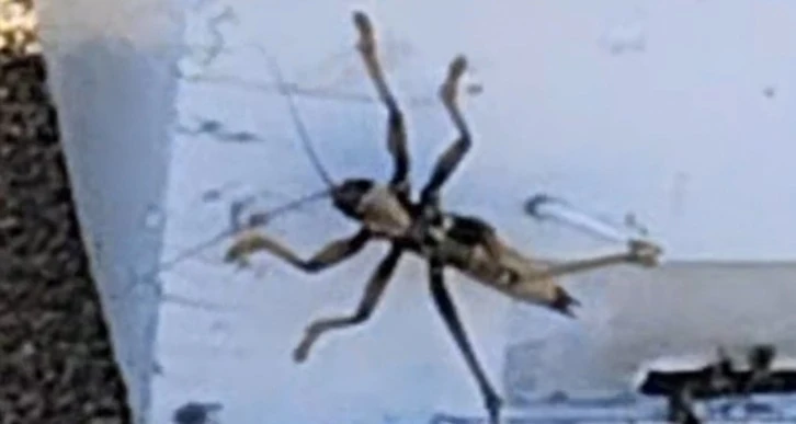 Elazığ’ın Palu ilçesinde bal kovanları arasında dev etçil çekirge görüntülendi.