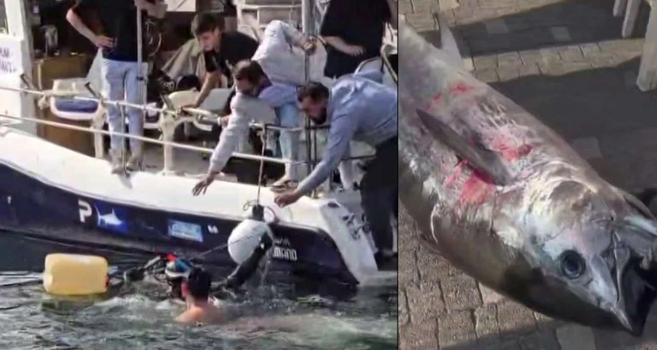 Bursa’nın Gemlik ilçesinde balıkçılar dev orkinos balığı yakaladı. Balıkçıların elinden kaçmaya çalışan balık tekneyi salladı.
