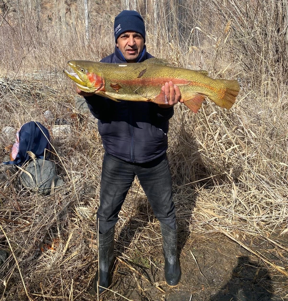 Erzurum’un Oltu ilçesinde bulunan Ayvalı Barajında amatör bir balıkçı yaklaşık 7 kilo ağırlığında bir balık tuttu.
