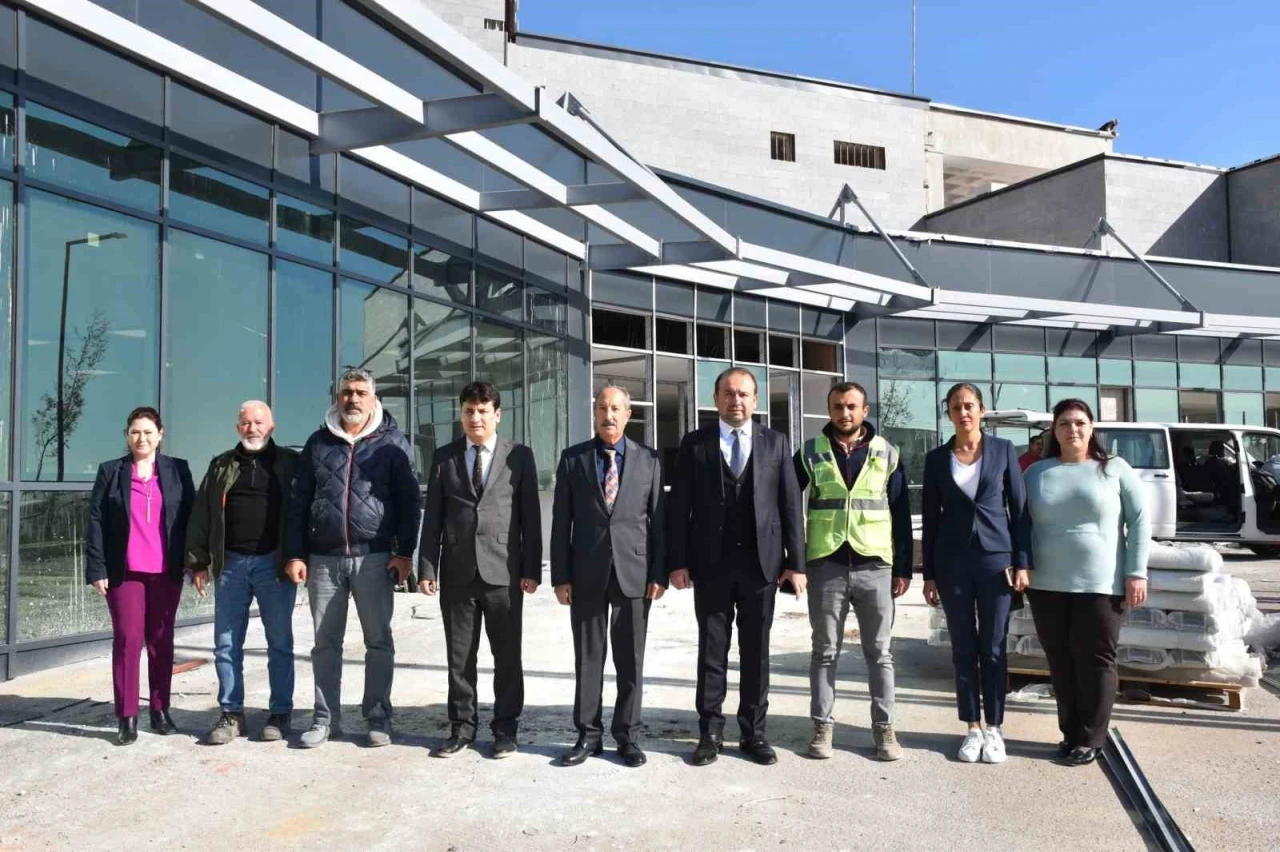İl Sağlık Müdürü Dr. Eser Şenkul, yapımı devam eden Didim Devlet Hastanesi yeni hizmet binası inşaat alanın da inceleme ve değerlendirmelerde bulundu. Didim’de 23 bin 278 metrekare kapalı alana sahip, 75 Yatak Sayılı, 32 Poliklinik ve 10 Yoğun Bakım Yataklı Didim Devlet Hastanesi yeni hizmet binası inşaatını ziyaret eden İl Sağlık Müdürü Şenkul, yürütülen çalışmalar ve son durum ile ilgili bilgi aldı. İl Sağlık Müdürü Şenkul, Didim Devlet Hastanesi’nde tefrişat işlemlerinin devam ettiğini ve çalışmalarda sona gelindiğini ifade ederek vatandaşların hizmetine sunulması için çalışmaların yoğun bir şekilde devam ettiğini ve tüm çalışmaların yakından takip edildiğini belirtti.