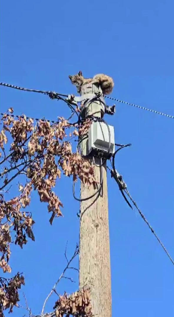 Bingöl’ün Karlıova ilçesinde, yaklaşık 5 metrelik direkte mahsur kalan kedi, internet arızası için çalışma yapan işçinin müdahalesiyle kurtarıldı.