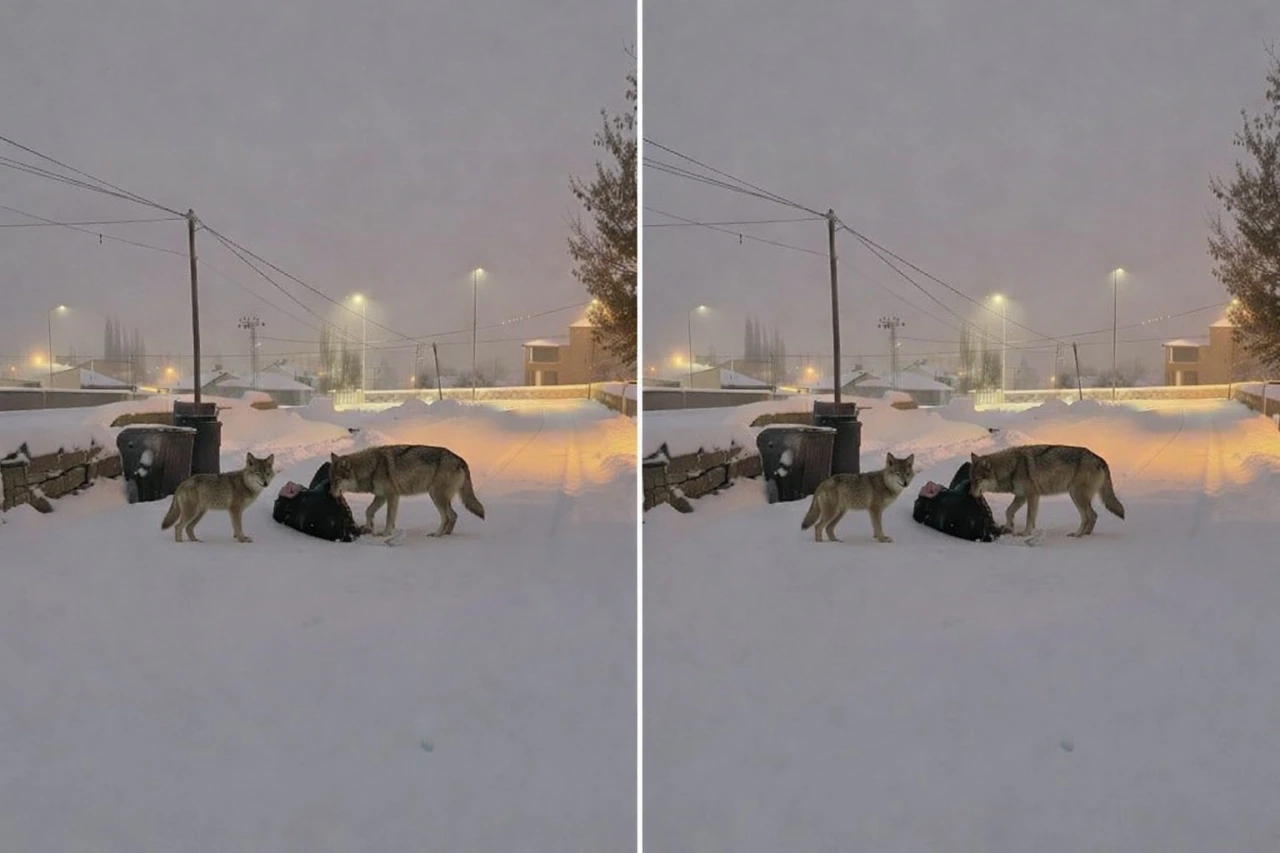 Kar kalınlığının artması ve doğada yiyecek bulmanın zorlaşmasıyla birlikte yerleşim yerlerine inen kurtlar, bir sokak üzerinde yiyecek ararken cep telefonu kamerasıyla kaydedildi. Görüntülerde kurtların karla kaplı yolda uzun süre dolaştığı ve çevreyi kontrol ettiği görüldü.