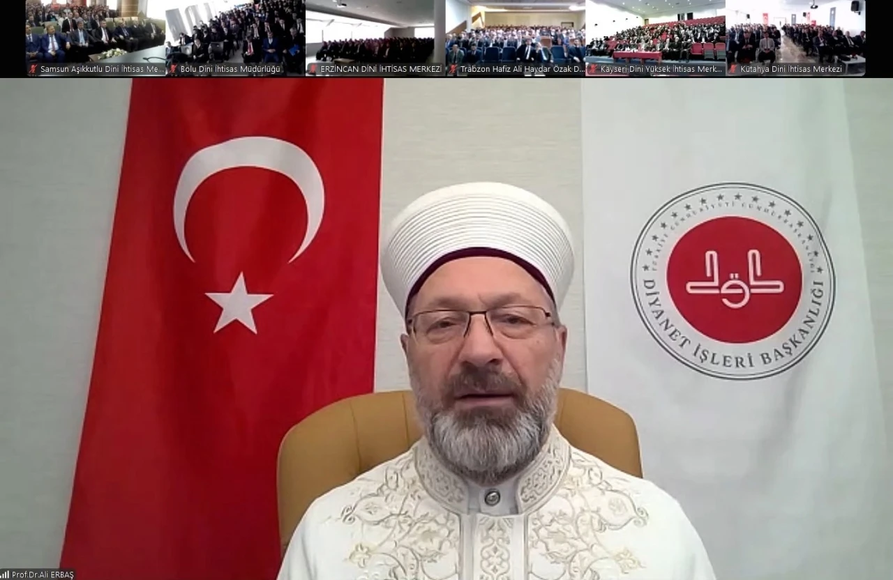 Diyanet İşleri Başkanı Erbaş, Diyanet Akademisi tarafından düzenlenen 3. Dönem Aday Din Görevlileri Mesleki Eğitimi açılış programına çevrim içi olarak katıldı. Aday din görevlilerine hitap eden Erbaş, "Anayasamızın ilgili maddeleri Diyanet İşleri Başkanlığına, toplumun bütün kesimlerine din hizmeti sunma ve rehberlik yapma mükellefiyeti yüklemektedir. Bizler, bu mükellefiyetin gereği olarak her türlü siyasi ve ideolojik görüşün üstünde hiçbir mezhep-meşrep ayrımı yapmadan bütün topluma hizmet etmek zorundayız" şeklinde konuştu.