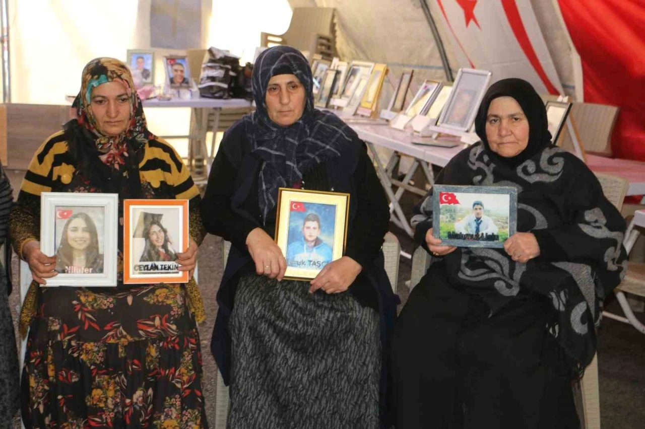 Terör örgütü PKK tarafından kaçırılan çocuklarına kavuşmak isteyen ailelerin 3 Eylül 2019’da Diyarbakır HDP il binası önünde başlattığı oturma eylemi aralıksız sürüyor. Dün yapılan ‘silah bırakma’ çağrısı Diyarbakır’daki anneler tarafından ’umut verici’ olarak karşılandı. Aileleri ‘terörsüz Türkiye’ çağrısında bulundu.