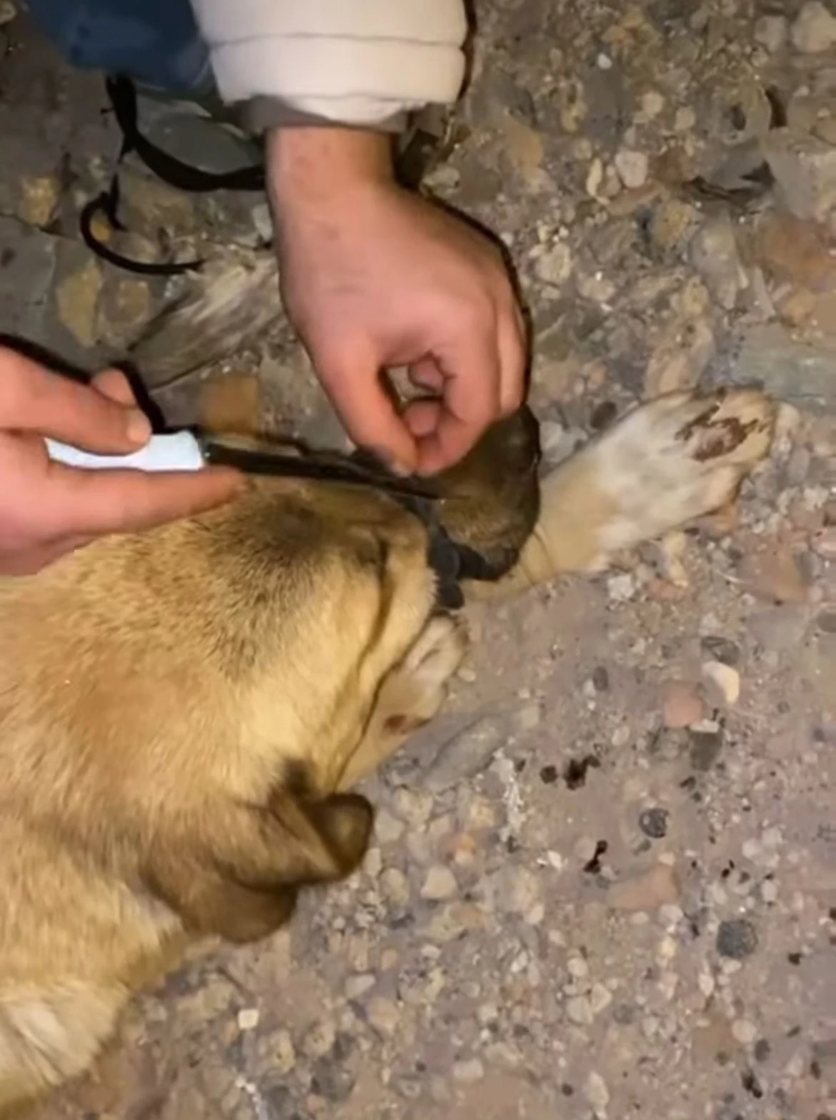 Diyarbakır’da sokakta ağzı iple bağlı bulunan köpek, polis ve vatandaşlar tarafından kurtarıldı.