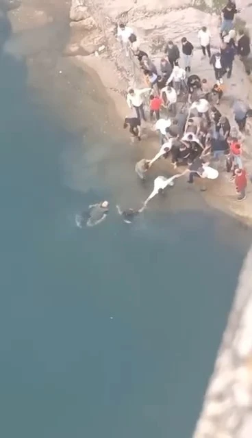 Diyarbakır’ın Silvan ilçesinde tarihi Malabadi Köprüsü’nde dengesini kaybederek suya düşen şahıs ve onu kurtarmak için atlayan kişi, vatandaşların el ele vermesiyle kurtarıldı.