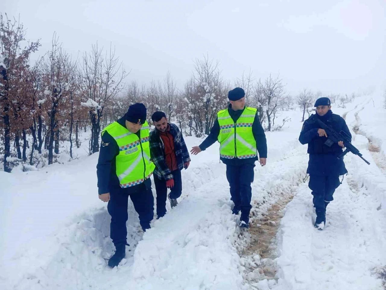 Diyarbakır’ın Çüngüş ilçesinde kar nedeniyle yolda mahsur kalan vatandaş jandarma ekiplerince kurtarıldı.