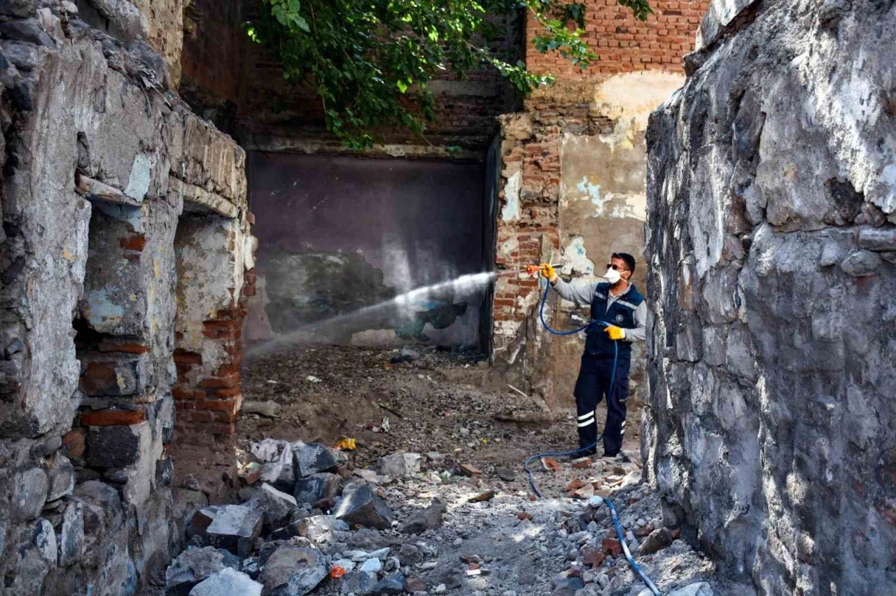 Diyarbakır Büyükşehir Belediyesi, Sur içindeki metruk binalarda yılan, akrep ve benzeri haşerelere karşı ilaçlama çalışması yaptı.