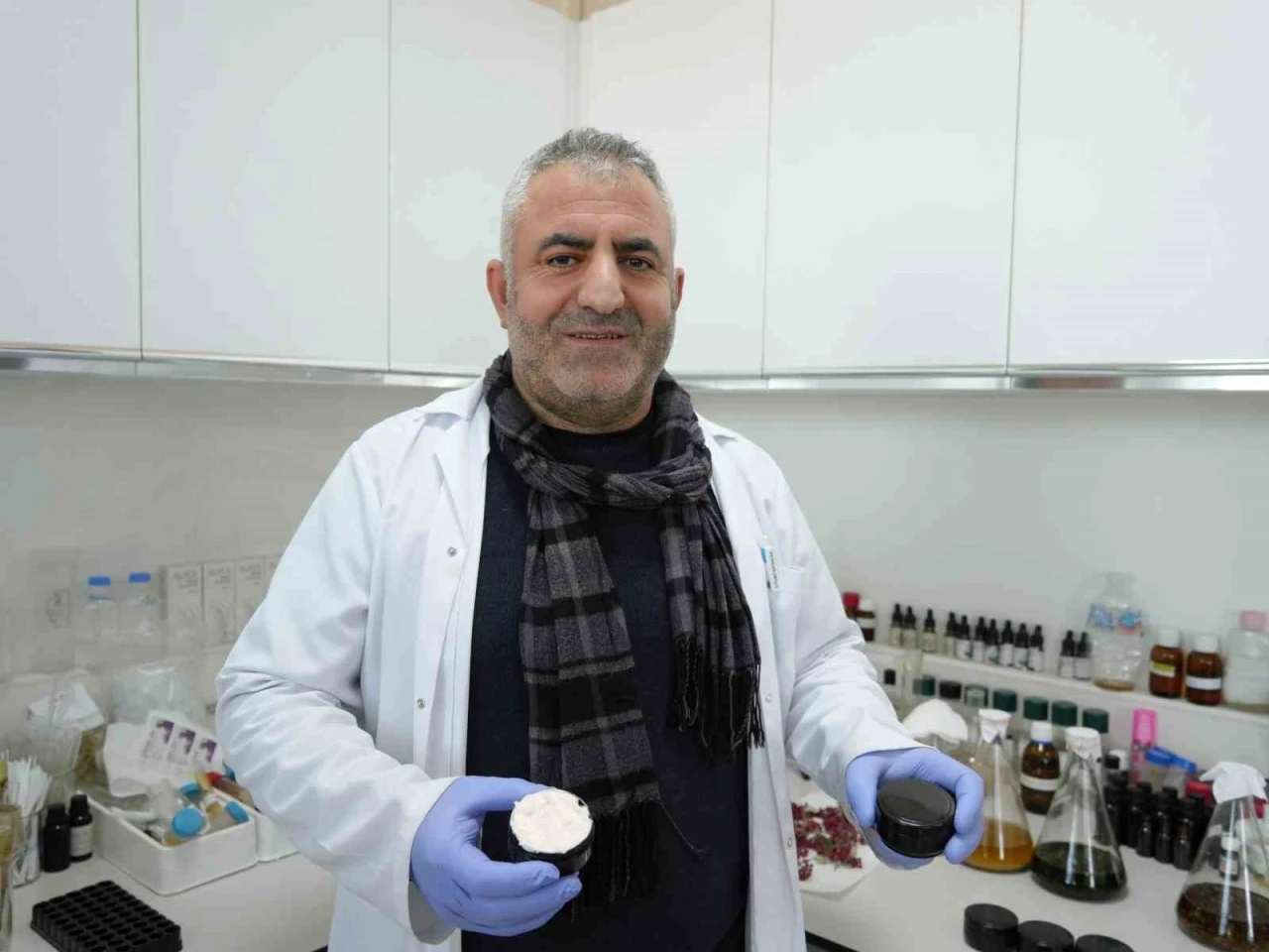 Kimya ve Kimyasal İşleme Teknolojileri Bölümü ve Araştırma Laboratuvarı Uygulama ve Araştırma Merkezi Sorumlusu Öğretim Görevlisi Musa Karadağ, son olarak yörede üretilen tipik aromatik bitkilerin özleri ile aynı şekilde bölgede üretilen baldan ve bal mumundan leke kremi üretti. Üretilen krem başta güneş lekesi, yanık lekeleri, doğum lekesi ve renk pigmentasyonu gibi sorunların çözümünde kullanılacak. Ürettikleri üründen çok olumlu sonuçlar aldıklarını belirten Öğretim Görevlisi Karadağ, “Üniversitemizin ihtisas üniversitesi olması ile beraber tıbbi aromatik bitkiler ve tarımsal ürünler üzerinde büyük çalışmalar yapmaktayız. Şu anda görüldüğü şekilde birçok ürünün ön çalışmasını burada yapıyoruz. Bunları ileriki süreçte hem endüstriyel anlamda hem de ticari anlamda güzel ürünlere dönüştürmeyi hedefliyoruz. Şu anda yaptığımız çalışmaların başında devam eden tıbbi aromatik bitki ekstrakt ve aromalarından veya düzenli yağlarından artı arılardan elde ettiğimiz baldan tutun bal mumuna kadar veya işte propolisin kadar bunları değerlendirerek katma değerli ürün üretimi gerçekleştiriyoruz. Şu anda ürettiğimiz ürünün, özellikle ciltte bulunan lekeler için özellikle doğum sonrası lekelerde, renk pigmentasyonu gibi sorunların çözümünde biliyorsunuz balın ve bal mumunun büyük bir özverisi vardır. Biz de bunu güzel bir şekilde tipik aromatik bitkilerle resmileştirerek katma değeri yüksek bir ürüne dönüştürdük. Bu ürünü birçok denemede olumlu sonuçlar aldık" dedi.