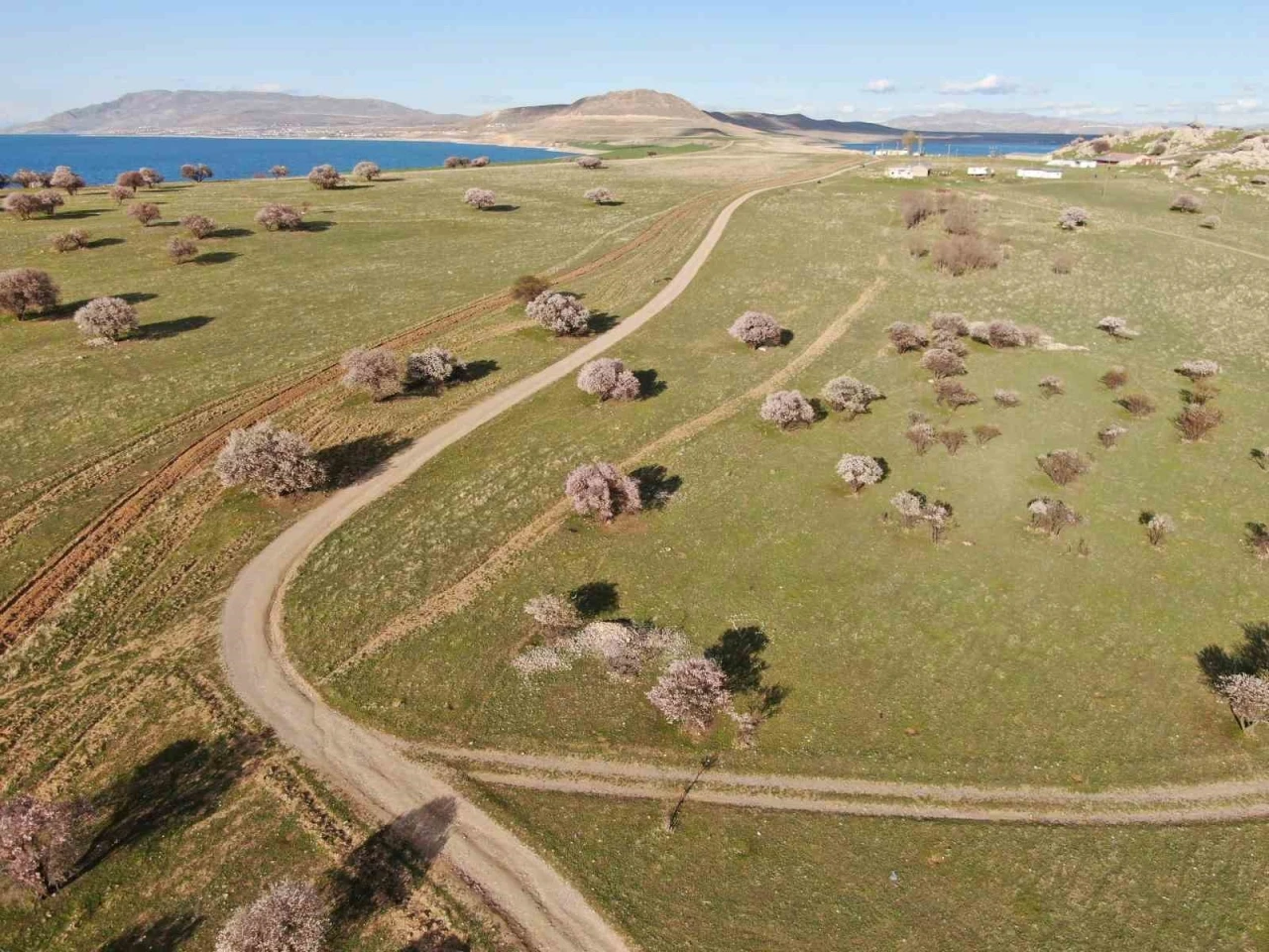 Van’ın Tuşba ilçesi sınırları içerisinde yer alan Çarpanak yarımadası, badem ağaçlarının oluşturduğu eşsiz manzarasıyla bugünlerde doğaseverlerin ve fotoğraf tutkunlarının ilgi odağı oldu.