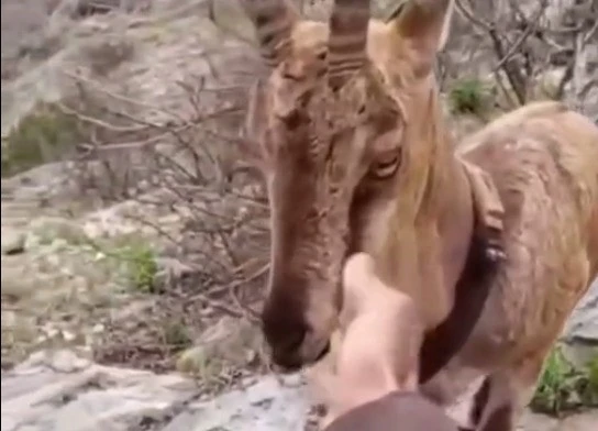 Yozgat’ın Aydıncık ilçesinde doğaya salınan yaban keçisiyle vatandaşın diyaloğu yürekleri ısıttı.
