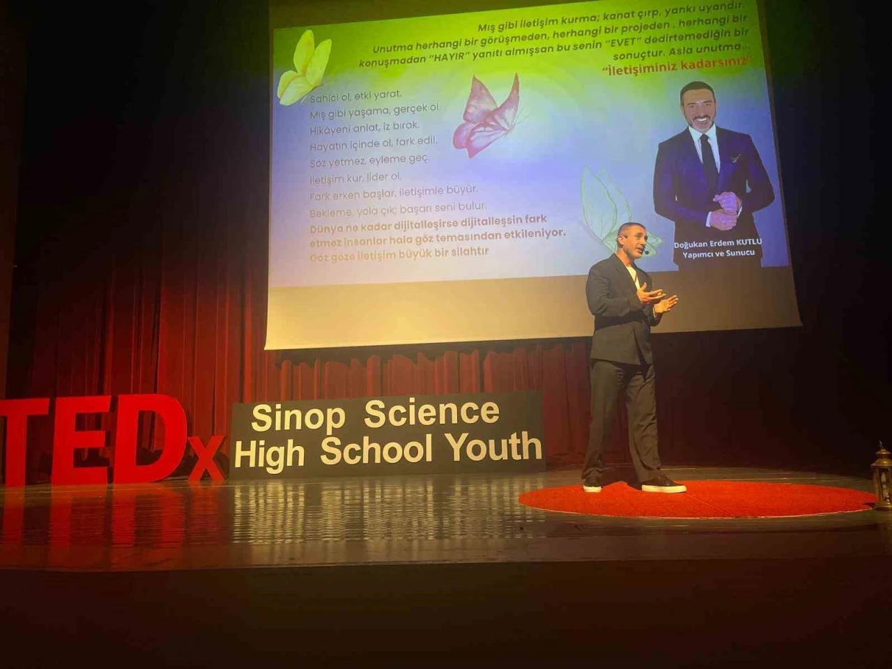 Patron Mutfakta programının yapımcısı Doğukan Erdem Kutlu, Sinop’ta özel bir kolejde düzenlenen TEDx etkinliğinde sahneye çıktı. Kutlu, "Mış Gibi Konuşmayın, Mış Gibi Yaşamayın" başlıklı konuşmasında gençlere samimiyetin, sorumluluk almanın ve sahici iletişimin önemini anlattı.