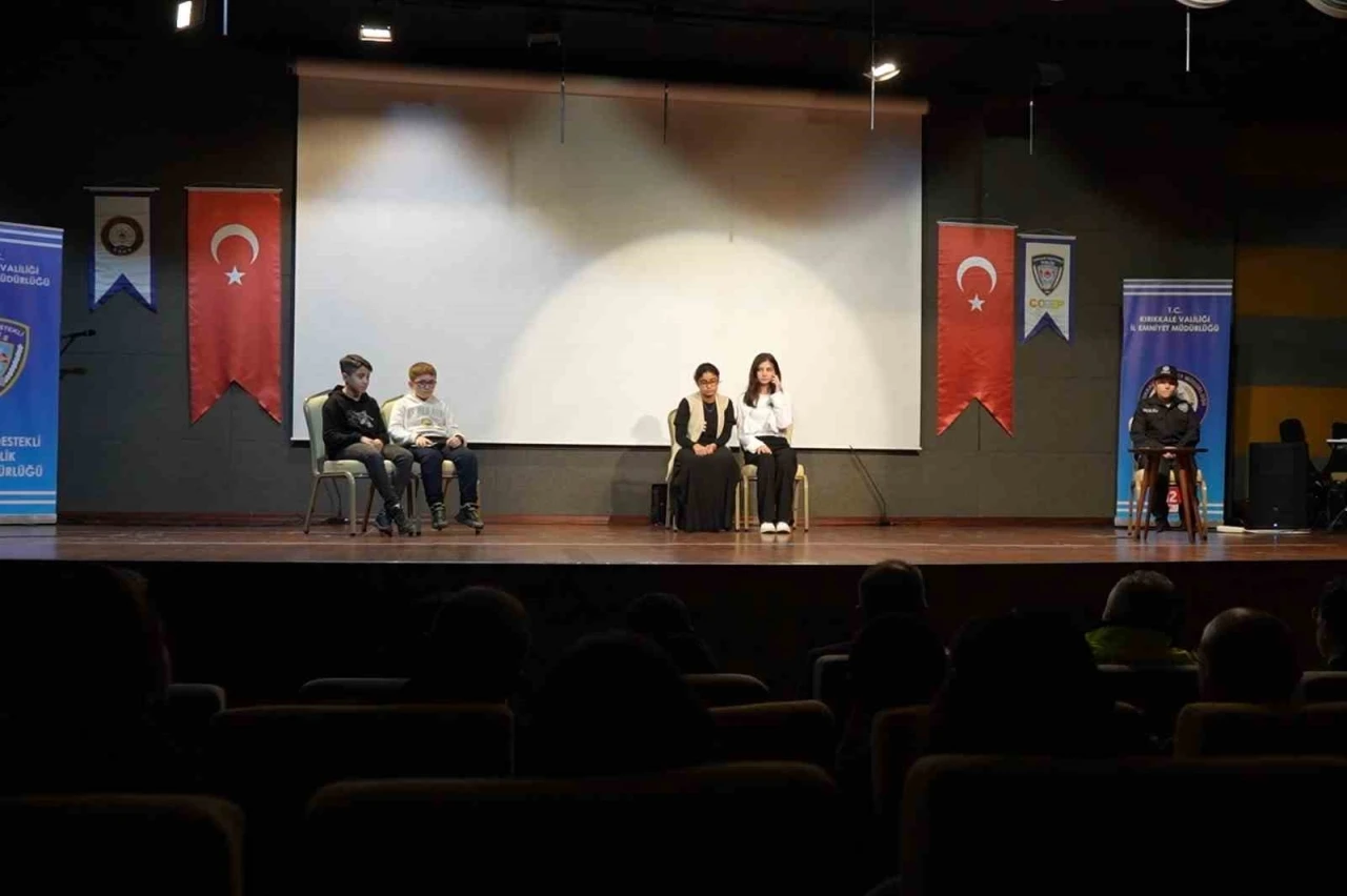 Kırıkkale İl Emniyet Müdürlüğü tarafından ÇOGEP kapsamında hazırlanan projede yer alan çocuklar, telefon dolandırıcılığına karşı farkındalık oluşturmak amacıyla bir tiyatro oyunu sahneledi. Dolandırıcılık yöntemlerini ve 112 Acil Çağrı Merkezi’ni aramanın önemini eğlenceli bir dille anlatan oyunu sergileyen çocuklar, izleyicilerden tam not aldı.