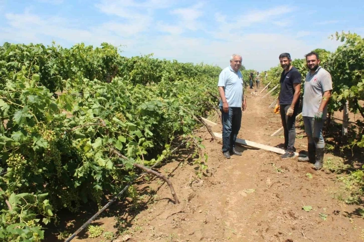 Manisa’nın Alaşehir ilçesinde dün etkili olan dolu yağışı sonrası üzüm bağlarında hasar tespit çalışmaları başladı.