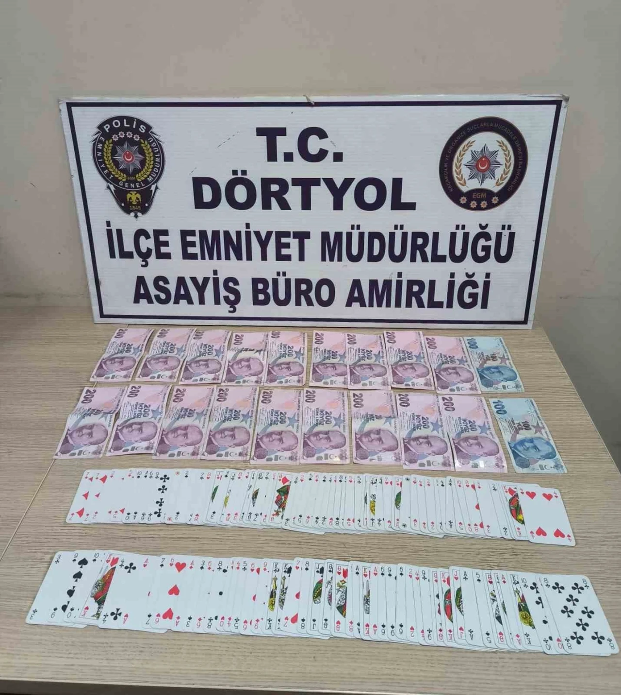 Hatay’ın Dörtyol ilçesinde kumar oynayan 3 şahsa 27 bin 741 TL para cezası uygulandı.