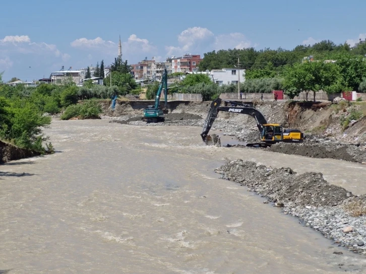 Hatay’ın Dörtyol ilçesinde kuvvetli yağışın etkisiyle köprüyü parçalayan derede, ekiplerin ıslah çalışmaları devam ediyor.