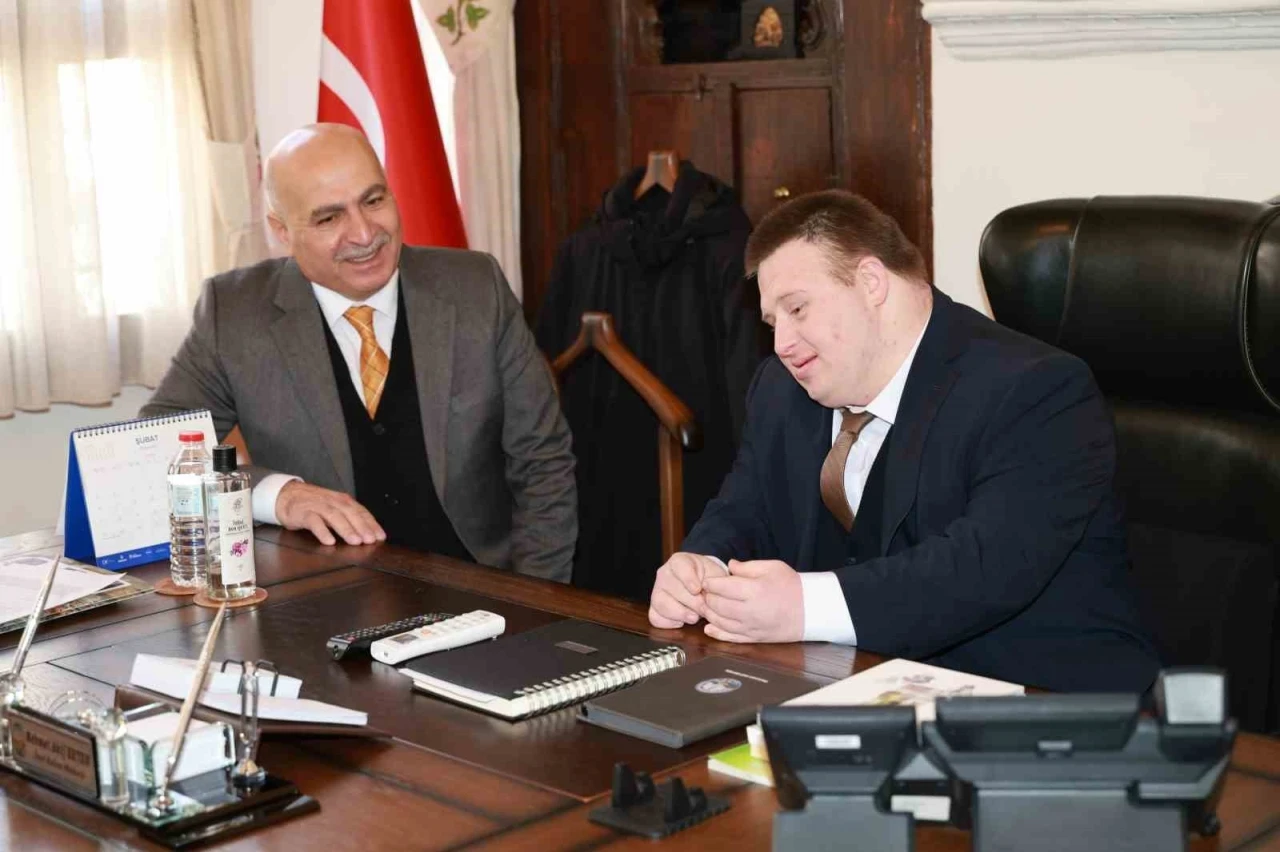 Tokat’ta down sendromlu Ethem Ay, Belediye Başkanı Mehmet Kemal Yazıcıoğlu tarafından özel kalem müdürü olarak işe alınarak ilk iş gününde gösterdiği başarı ile takdir topladı.