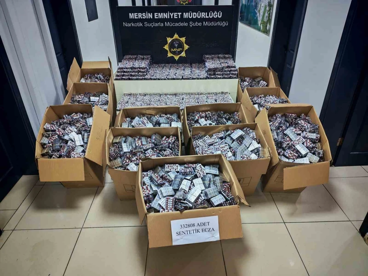 Mersin’de polisin dronla takip ettiği bir kamyonette 332 bin 808 adet sentetik ezca ele geçirildi, yakalanan 1 şüpheli tutuklandı.