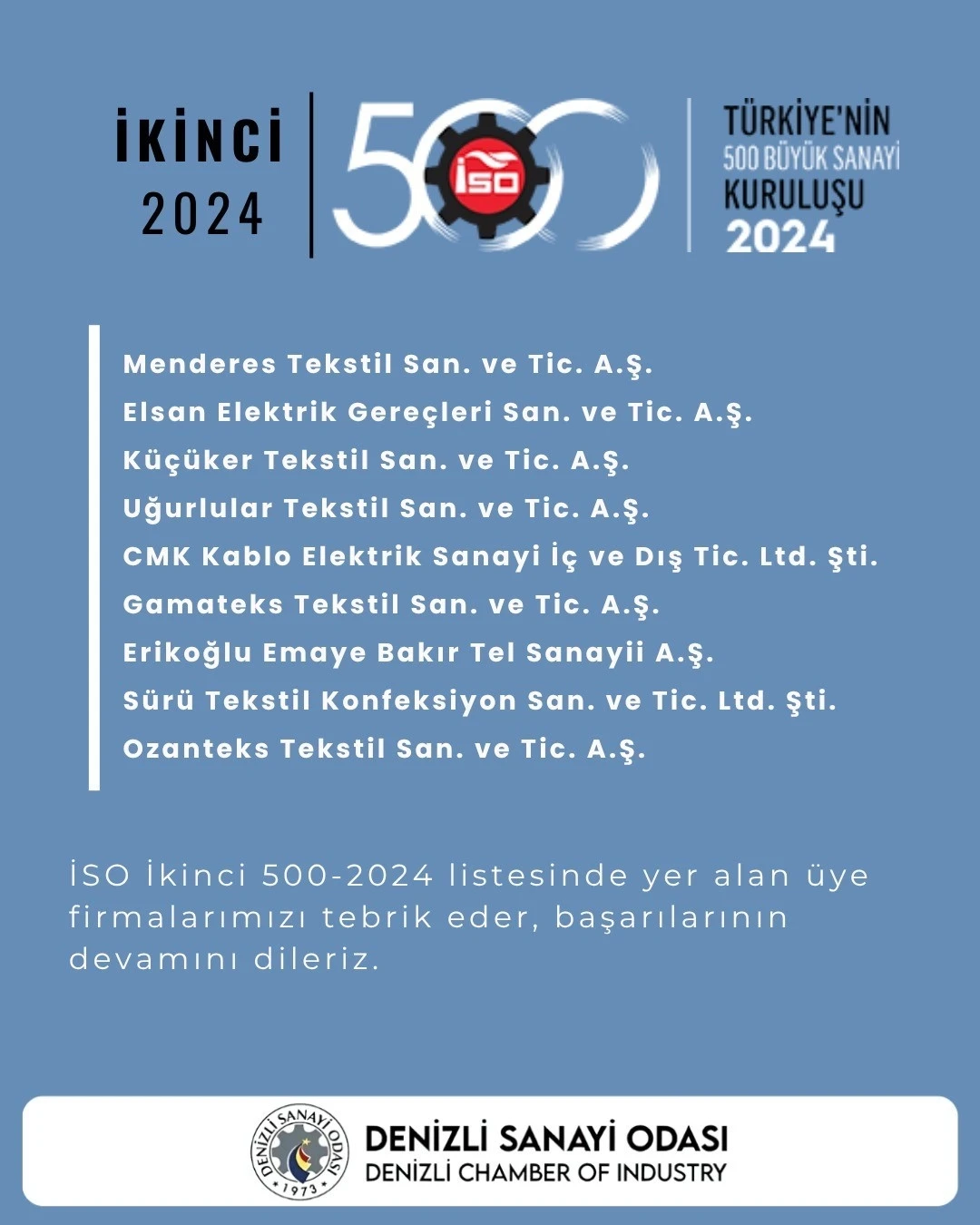 İstanbul Sanayi Odası (İSO), Mayıs ayında açıkladığı "İSO Türkiye’nin 500 Büyük Sanayi Kuruluşu-2024" araştırmasının ardından, "İSO İkinci 500" araştırmasının sonuçlarını açıkladı. Listede, bu yıl Denizli’den 9 firma yer aldı. Tekstil-konfeksiyon sektörü 6 firma ile kendine yer bulurken, kablo-bakır tel 3 firma ile listede öne çıktı. Geçtiğimiz yıl ilk 500 listesinde bulunan Menderes Tekstil, bu yıl İkinci 500 listesine ilk sıradan dahil oldu. Elsan Elektrik Gereçleri, listede bu yıl 38. sırada yer alırken, Elsan’ı 166. sıradaki Küçüker Tekstil, 167. sıradaki Uğurlular Tekstil izledi. Listede bulunan Denizli firmalarından 7’si geçen seneye göre daha üst sıralara yükseliş gösterirken, geçen sene ikinci 500 sıralamasında bulunan bir firmamız bu yıl listede yer almadı. DSO Yönetim Kurulu Başkanı Selim Kasapoğlu, "İSO İkinci 500-2024 araştırması, içinden geçmekte olduğumuz ekonomik ve finansal şartları, ihracat performanslarını, AR-GE ve teknoloji faaliyetlerine ilişkin göstergeleri açısından önemli sonuçlar ortaya koydu. 2023 yılında 11 olan firma sayımız geçen yıl 9’a düşmüştü. Bu yıl da listede 9 Denizlili firmamızın yer aldığını görüyoruz. İlk 500’deki 14 firmamızla birlikte İSO İlk 1000’de toplam firma sayımız 23 oldu. Geçtiğimiz yıl ikinci 500 listesinde bulunan bir firmamız listede yer almazken, ilk 500’de yer alan bir firmamız ikinci 500 listesine dahil oldu. Firmalarımızdan 7’si geçen seneye göre daha üst sıralarda listede kendisine yer buldu. Hepimizin malumu olduğu üzere 2024 yılı ekonomik konjonktür anlamında zor bir yıl oldu. 2025’in ilk yarısı ise hem ekonomik hem de küresel faktörlerin ve gelişmelerin etkisi altında geride kaldı. Yaşanan tüm bu olumsuzluklara rağmen sanayicilerimiz üretime devam etmek, sahip olunan pazarları kaybetmemek için mücadele ediyor. Yaşanan tüm zorluklara rağmen, yatırımlarıyla ekonomik büyümemize, ihracatımıza ve istihdama katkılarını sürdürerek, ikinci 500 listesinde kendisine yer bulan tüm firmalarımızı tebrik ediyorum. Önümüzdeki yıllarda listedeki firma sayımızın artmasını diliyorum." ifadelerini kullandı.