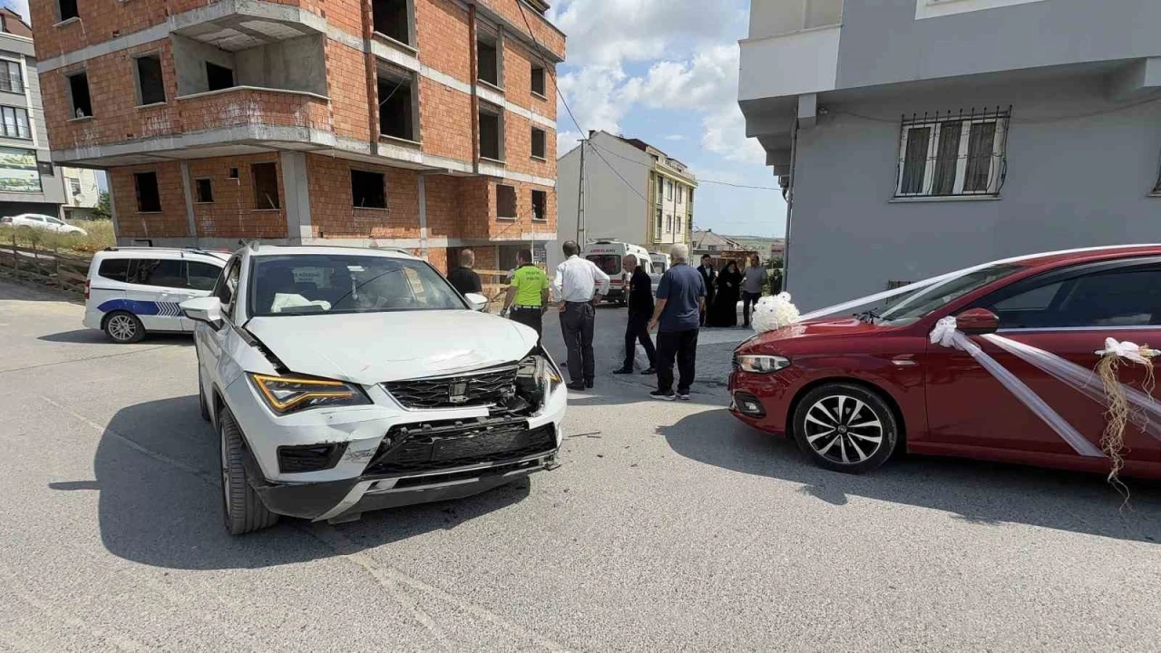 İstanbul Arnavutköy’de düğün için hazırlık yapan kişilerin içerisinde bulunduğu otomobil, başka bir araçta kazaya karıştı. Kazada, sürücüsünün panik yaparak fren yerine gaza bastığı otomobil bina boşluğuna düştü. Kazada 2 kişi yaralandı.