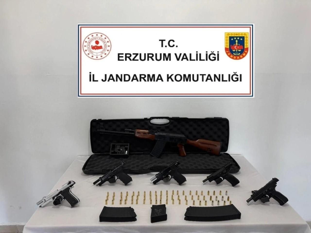 Erzurum İl Jandarma Komutanlığı Kaçakçılık ve Organize Suçlarla Mücadele Şube Müdürlüğü koordinesinde Erzurum’un Horasan ilçesinde bir düğün sırasında havaya ateş açılması olayıyla ilgili olarak başlatılan soruşturma kapsamında gerçekleştirilen operasyonda; 6 adet ruhsatsız tabanca, 1 adet ruhsatsız av tüfeği, 7 adet tabanca şarjörü, 3 adet av tüfeği şarjörü, 68 adet 9 mm fişek ve 1 adet lazer işaretleyici ele geçirildi.