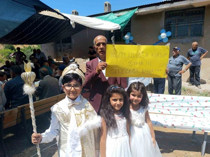 Tunceli’de bir sünnet düğününde, yurt genelinde ’maganda kurşunu’ dolayısıyla yaşanan üzücü olayların önüne geçmek ve farkındalık oluşturmak adına ’Mutluluğa kurşun sıkma, geleceği karartma’ pankartları açıldı.
